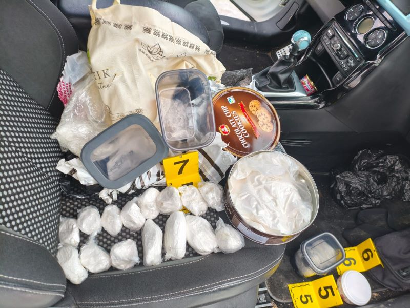 Izvršenim pretresom, pronađeno je ukupno 2600 grama praškaste materije koja svojim izgledom asocira na opojnu drogu amfetamin (speed) i 1 digitalna vaga za precizna mjerenja.