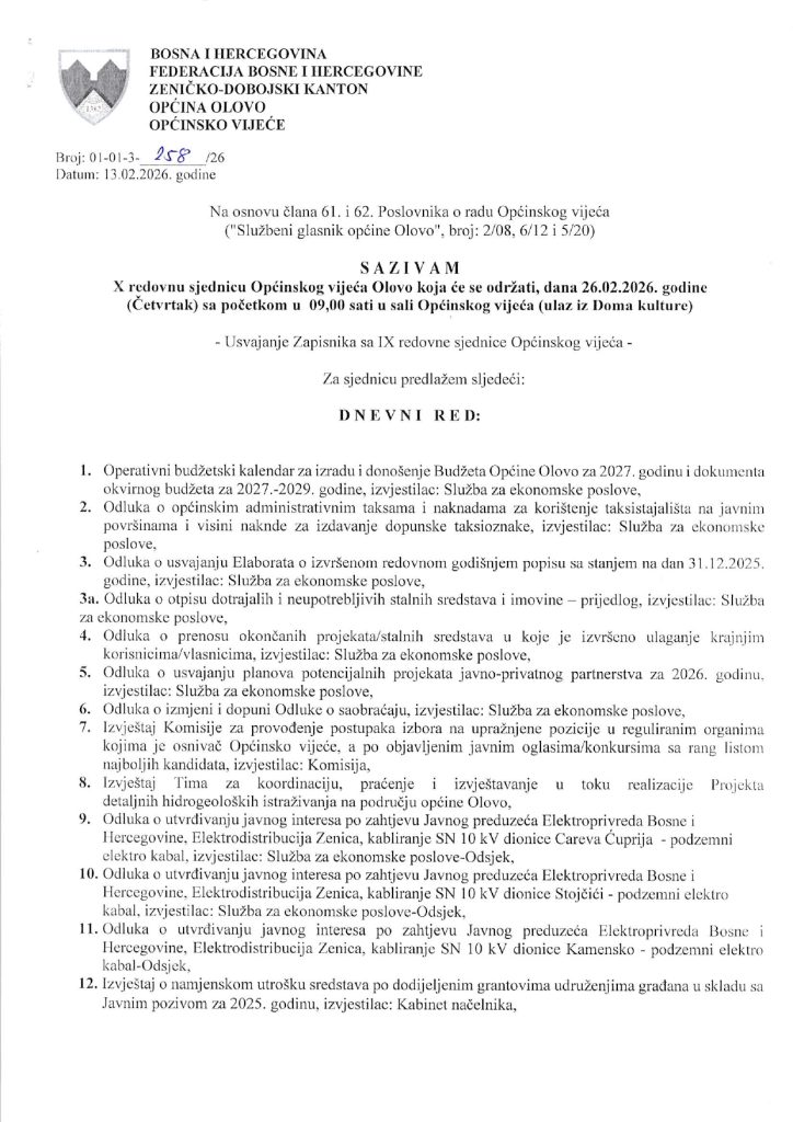 Početna/Olovo/Aktuelno/X. SJEDNICA OPĆINSKOG VIJEĆA U ČETVRTAK 26.02.2026. AktuelnoOlovo X. SJEDNICA OPĆINSKOG VIJEĆA U ČETVRTAK 26.02.2026. Radio Olovo Send an email prije 12 sati 163 Manje od minute Facebook X LinkedIn Tumblr Pinterest Reddit VKontakte Odnoklassniki Pocket Radio Olovo Send an email prije 12 sati 163 Manje od minute Facebook X LinkedIn Tumblr Pinterest Reddit VKontakte Odnoklassniki Pocket Prikaži više Podijeli Facebook X LinkedIn Tumblr Pinterest Reddit VKontakte Odnoklassniki Pocket Podijeli putem Emaila Print