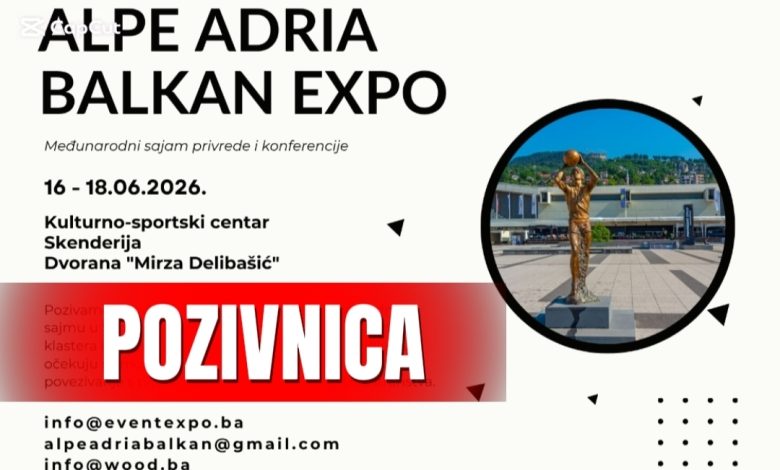 - Pozivaju se privredna društva, obrtnici, institucije, asocijacije i organizacije da uzmu učešće kao izlagači na međunarodnom sajmu ALPE ADRIA BALKAN EXPO 2026. i iskoriste sufinansiranje izlaganja na sajmu