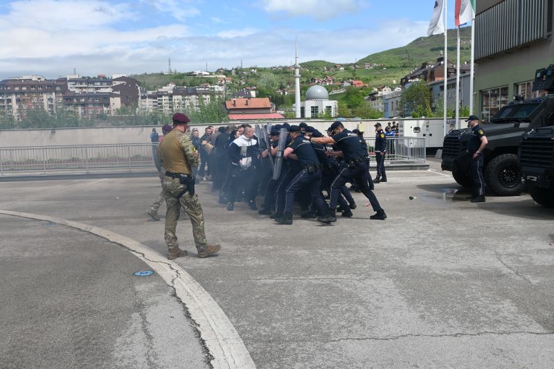 Tokom vježbe je simulirana situacija u slučaju narušavanja javnog reda i mira u većem obimu, izazvana neredima huliganskih skupina, uz angažovanje službenih pasa.